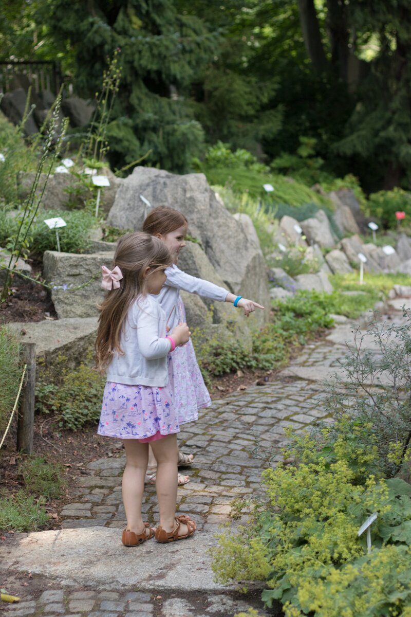 Tym razem postanowiłyśmy przejść się na mini wycieczkę, zwiedzając Ogród Botaniczny w Poznaniu. Jest to jedna z wycieczek po okolicy, które moim zdaniem też są bardzo ważne. Przy okazji obecności w ogrodzie, aby obrać jakąś trasę, wykonałyśmy ścieżkę przyrodniczą „Oblicza Botanika – część I”, którą jest dostępna na terenie Ogrodu. Możecie ją pobrać tutaj. Tym razem dziewczynki, chyba zmęczone ostatnimi wycieczkami, buntowały się, a w głowie był tylko piknik, trasę jednak udało się wykonać. Tak naprawdę to ścieżka daje możliwość chodzić po ogrodzie w konkretnym kierunku, dla mnie to duże ułatwienie. Najatrakcyjniejsze dla dziewczynek było Alpinarium, to chyba znak, że czas na góry 🙂 Poza tym bardzo chętnie odwiedziłabym ogród o każdej porze roku, chyba zrobię z tego mini projekt.